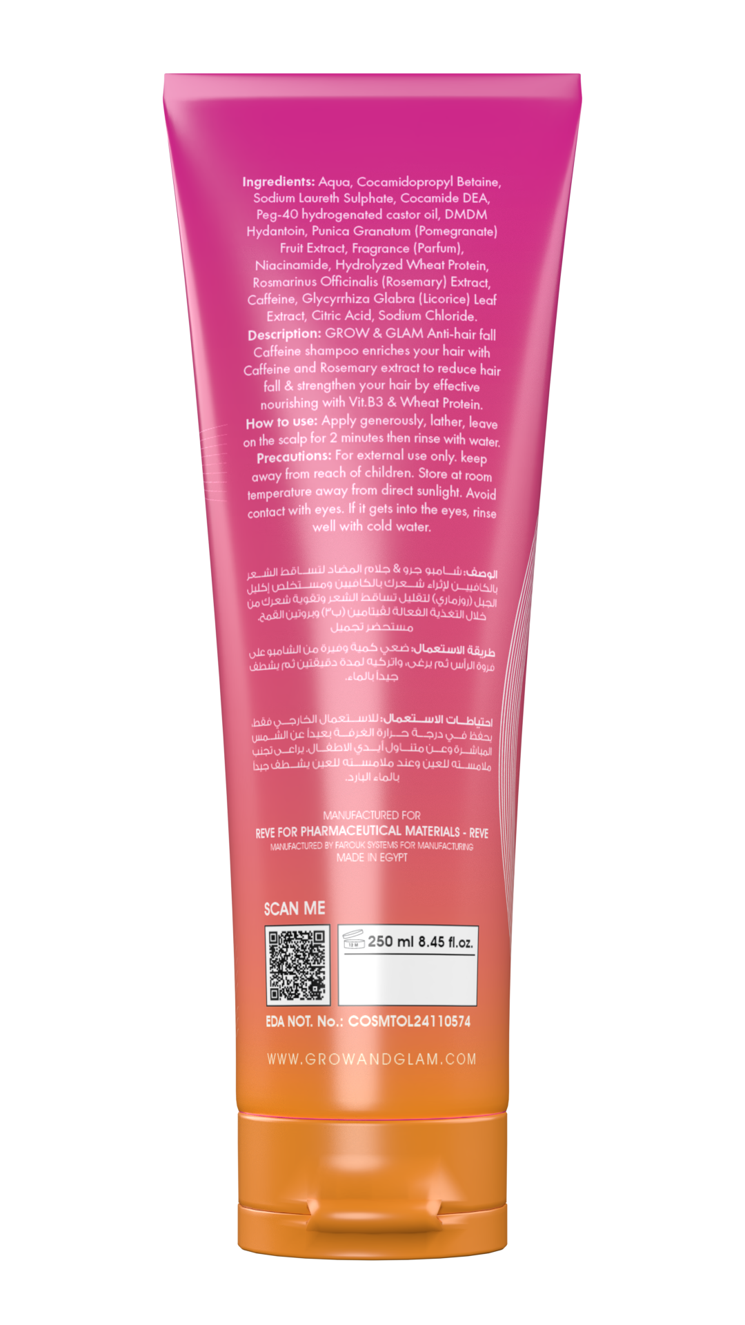 اكتشفي شامبو الكافيين الجديد Grow & Glam Anti-hair Fall من Reve للشعر المتكسر والضعيف والهش، فهو غني بالكافيين ومستخلص الروزماري وبروتين القمح وزيت الخروع والنياسيناميد (فيتامين B3).